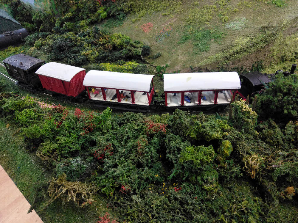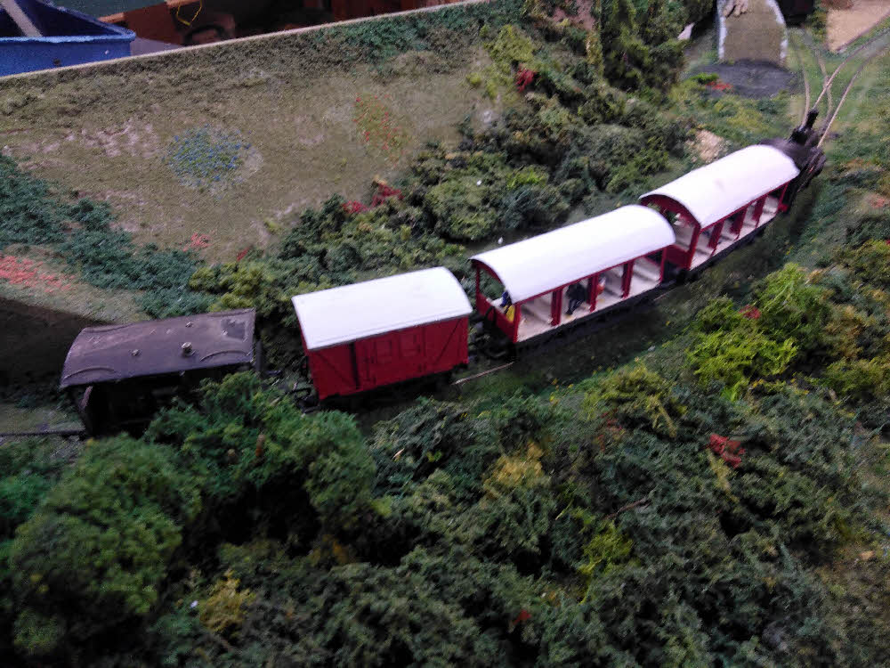 The tourist train is made up off two toast rack coaches, a parcels van (for