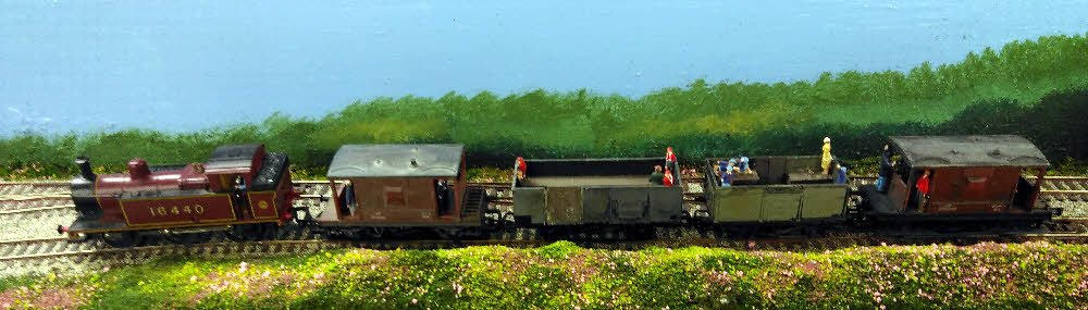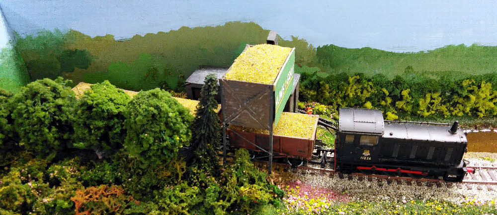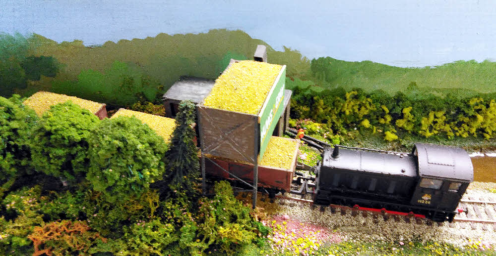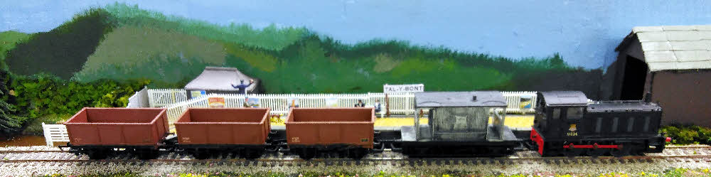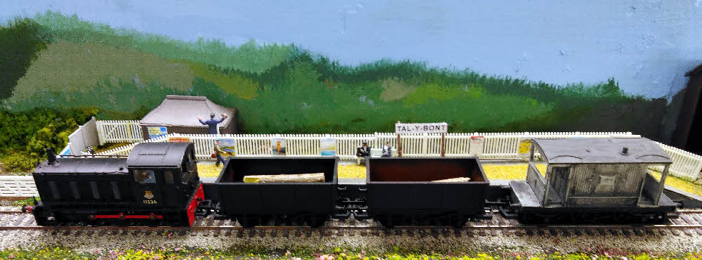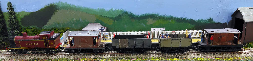 A train of empty sand tipplers arrive at Tal-y-bont.