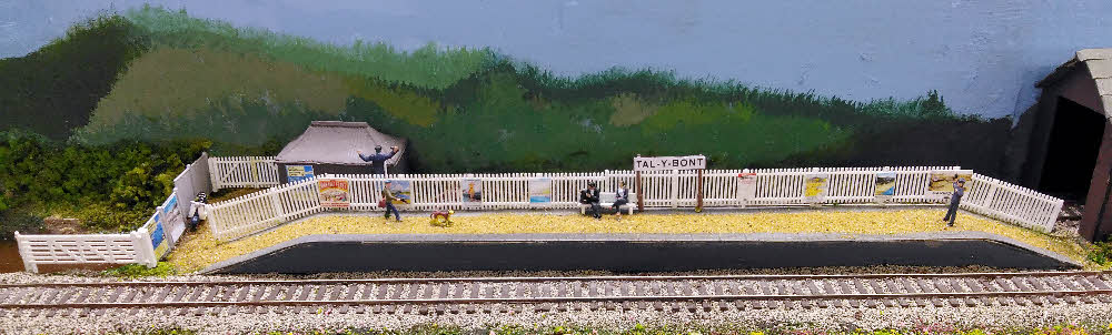 Tal-y-Bont station platform notice the gate to Huws and Gray's private siding