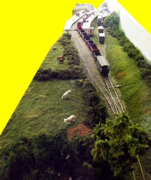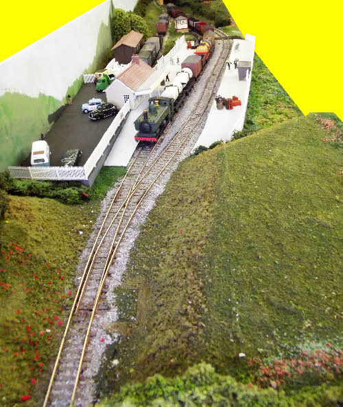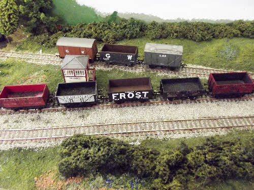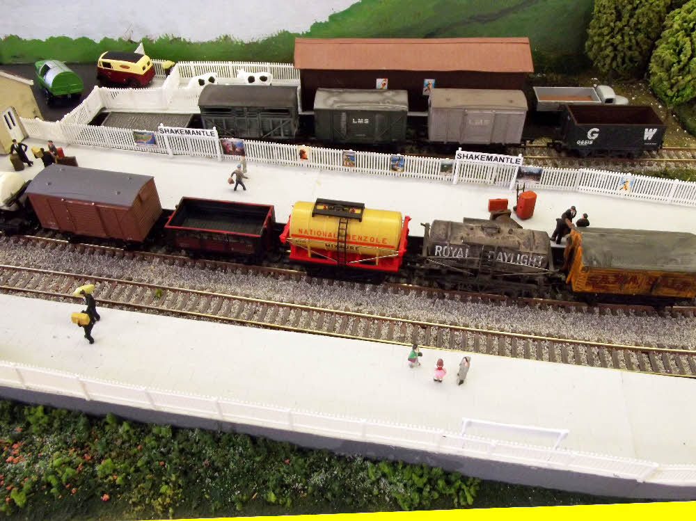 Shakemantle Station is a small but active station passing station. It goods siding with end & side loading docks, cattle pen and goods shed can deal with most goods. Mineral traffic mostly coal is dealt with at the Coal Yard and private siding traffic goes to & from local industries. The photos show a Great Western Railway goods train waiting to be passed by a Southern Railway passenger train and close ups of the station.