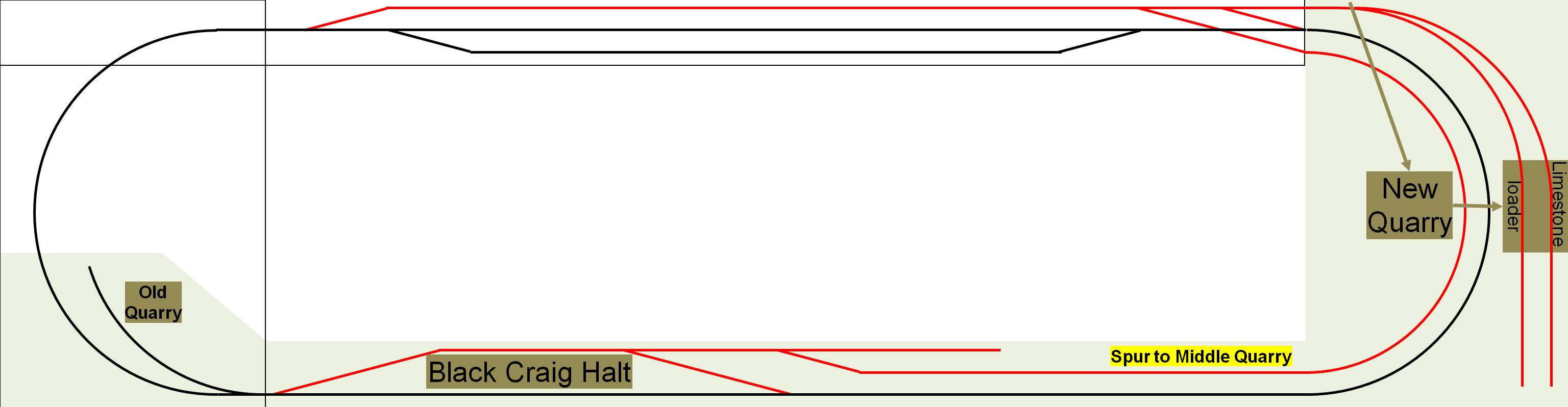 History opening in 1905 and its relative success lead to a proposal to extend the Cairn Valley Light Railway [Dumfries - Moniaive] 26 miles to Dalmellington via Carsphairn and Black Craig creating a shorter route from England to Ayr, the south of the Ayrshire coal field, and Dalmellington [an important coal & steel town]. The line would have been expensive to build [a Bridge over the Waters of Ken and minimising grades] and operate [long climbs of over 1:50]. It would have served an area of sheep farming [Carsphairn sheep show is in early June], quarrying and mining [lead/zinc/silver at Woodhead & haematite/limestone at Black Craig]. History has been twisted with the line coming to fruition, becoming part of the London Midland and Scottish Railway in 1923 and British Railways Scottish Region in 1948. The layout is set in the 1950’s with Scottish Region stock including Pannier tanks that surprisingly made their way to Scotland. The quarries at Black Craig supply limestone to the iron works at Dalmellington.