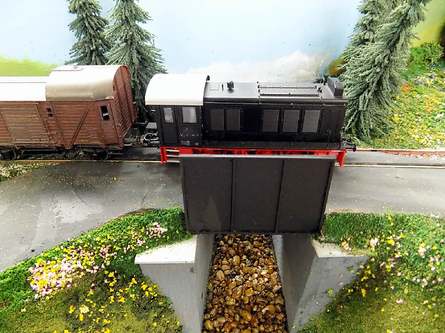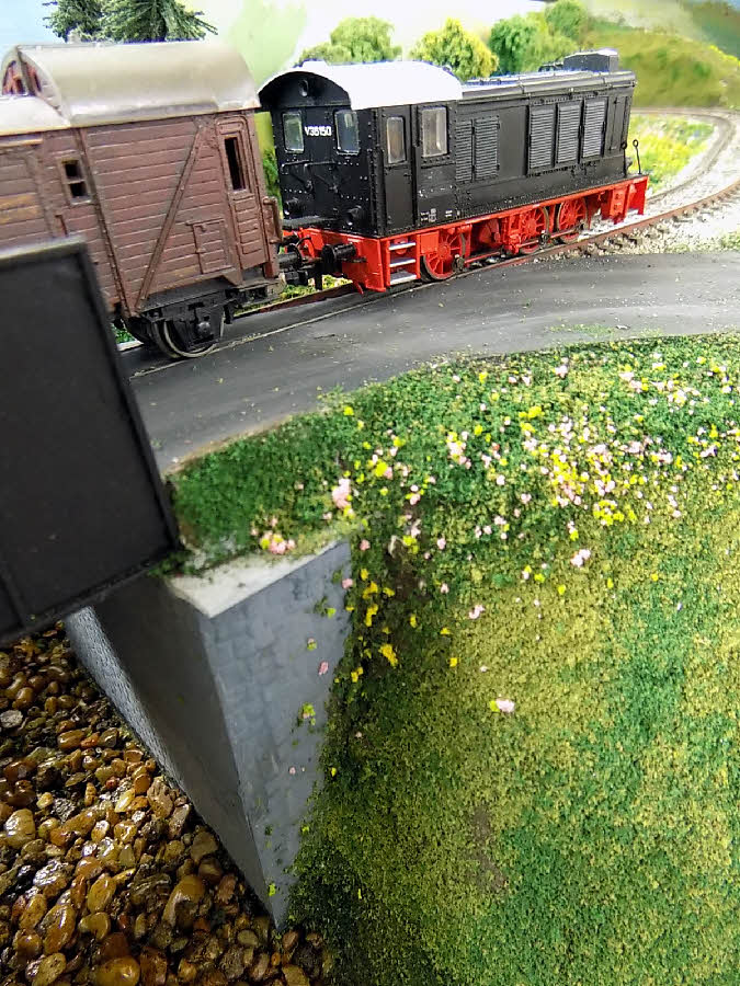 Nuovo Ponte (New Bridge) is a halt on the imaginary Società Anonima Tramvia Val de Boesio (Boesio Valley Tramway Ltd) a 10.5 Km long rural tramway between Cuveglio and Laveno-Mombello. The layout is set in the 1960's with operation by Automotore Diesel. Traffic is a mix of passenger services including a though coach from the Ferrovie Nord Milano and goods wagons for industries in the valley.
