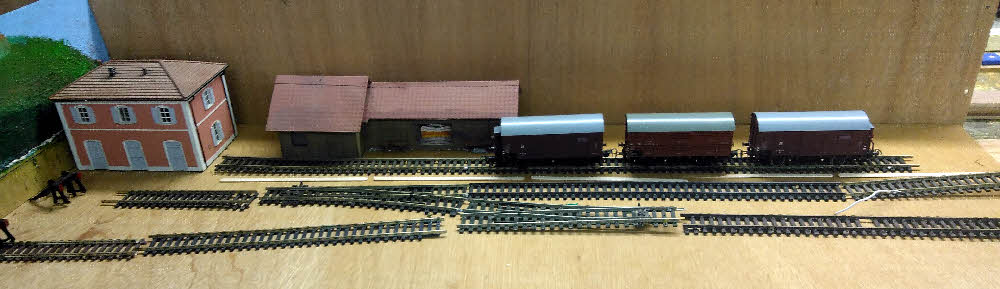 concrete. Before gluing in place the goods shed and loading dock were weathered