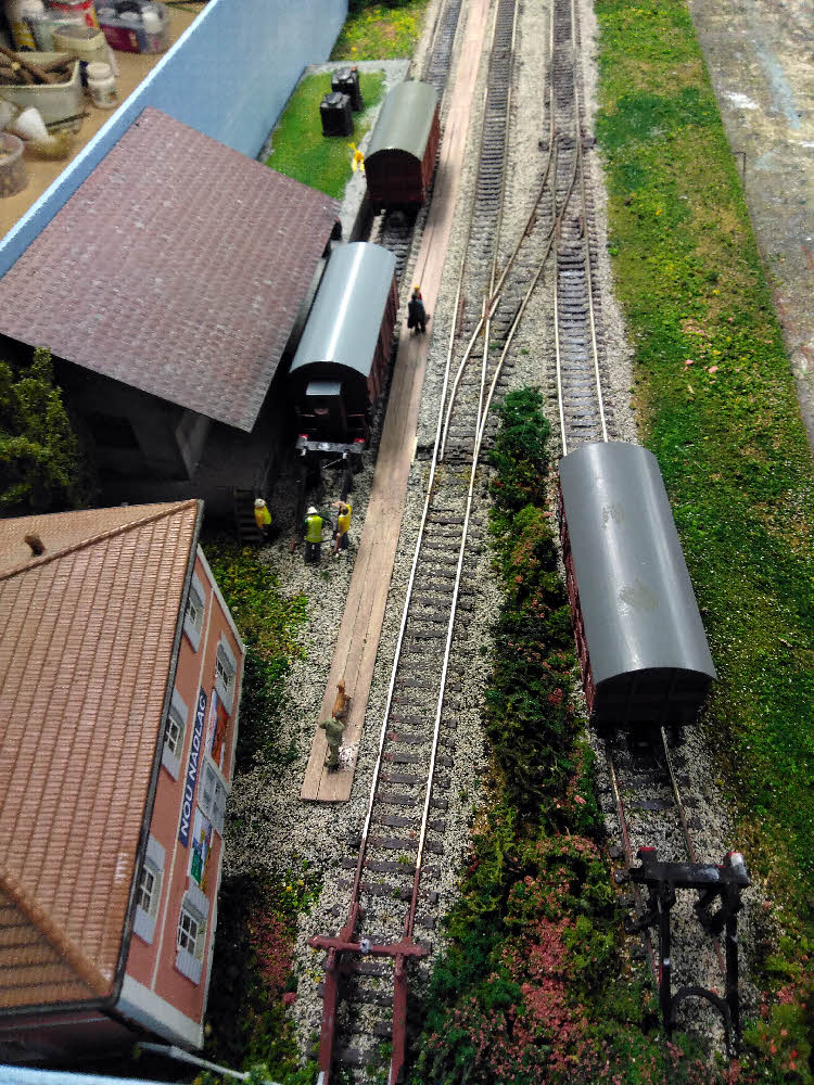 modellers glue on the ballast, waited several days while it dried, then tidied