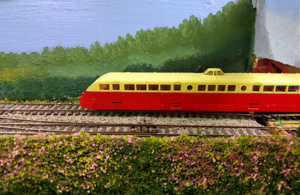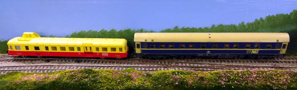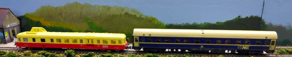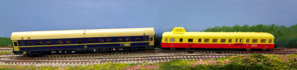 As the coach is not multiple unit fitted the French autorail has to run round at