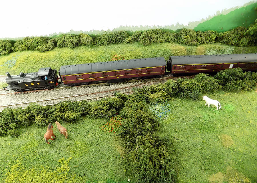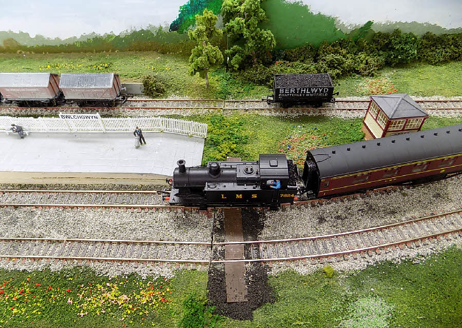 The loco runs round its train
