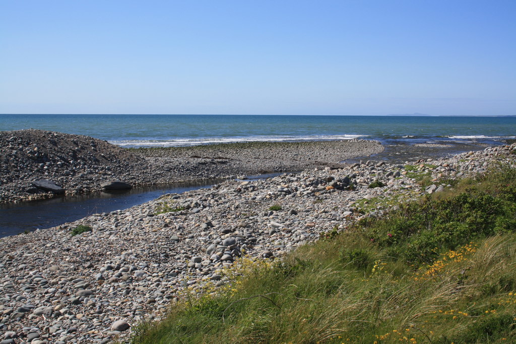 As a harbour the mouth of the Afon Llyfni (above) has it problems it's only accessible at high tide and the river is shallow with exposed rocks about 200 yards upstream from the river mouth (below). In all probability the harbour would have been no more than a quay.