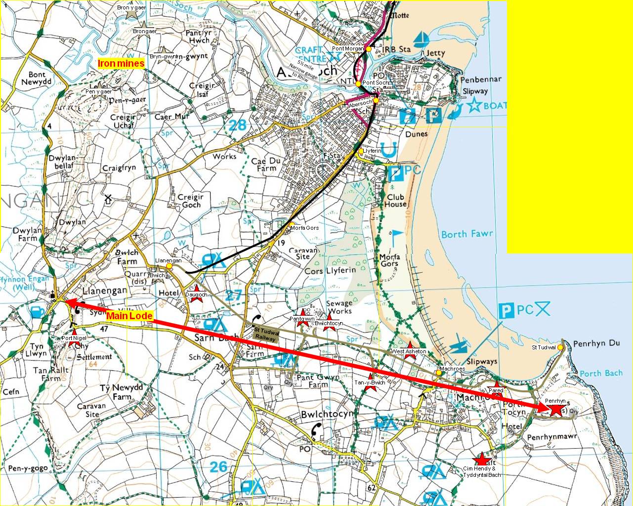 from the manganese mines at Rhiw and ¾ mile from the Bont Newydd iron mines) to