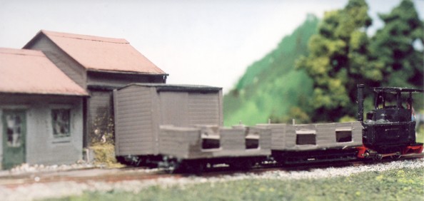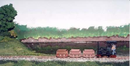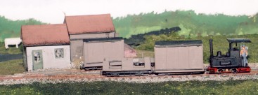 Why Se The layout is built to S scale (1:64) on 9mm gauge track the combination is known as Se. The advantages are it scales the 9mm track up to 576mm or very close to 600mm and at 1:64 scale the Jouef skips are almost the correct scale size. All other stock and the buildings are scratch built