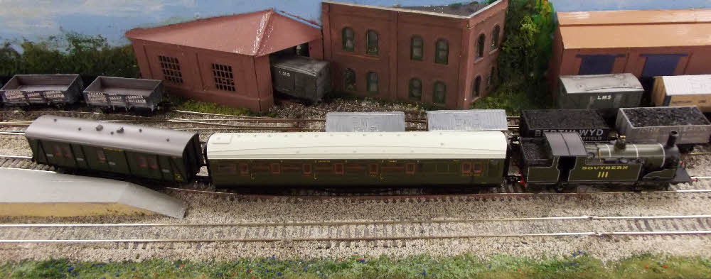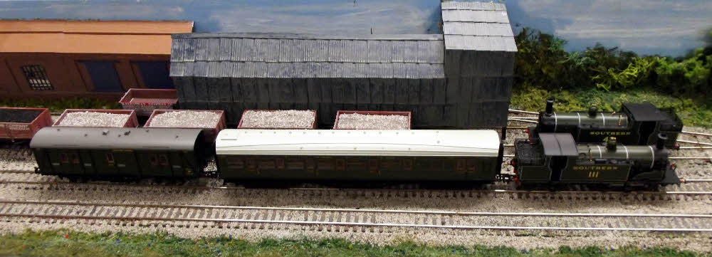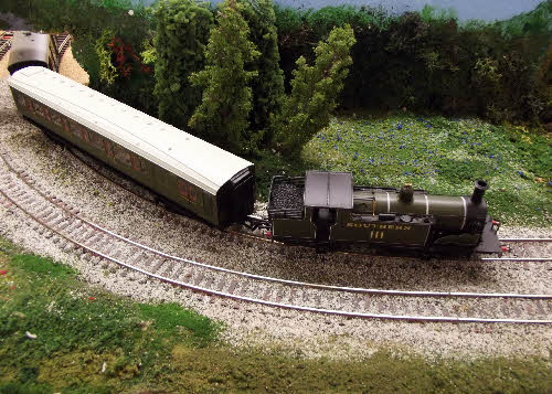 A local passenger train passing though Halecombe hauled by LSWR M7 111