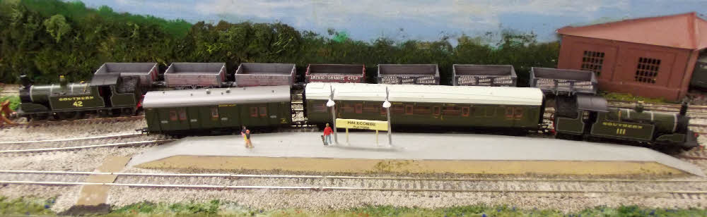 Halecombe Platform with M7 number 42 shunting and the limestone empty siding