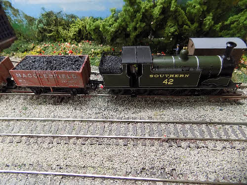 Passing the quarry loader (the blue corrugated building) and 42 shunting