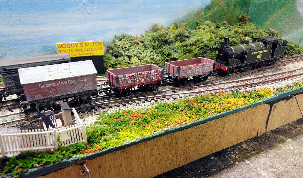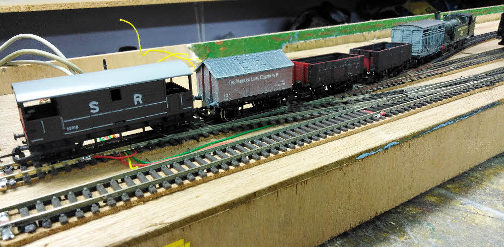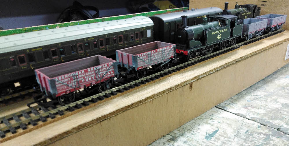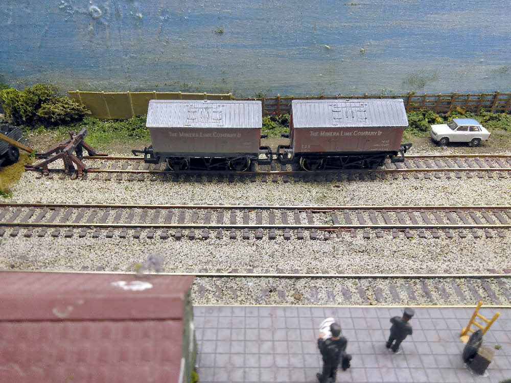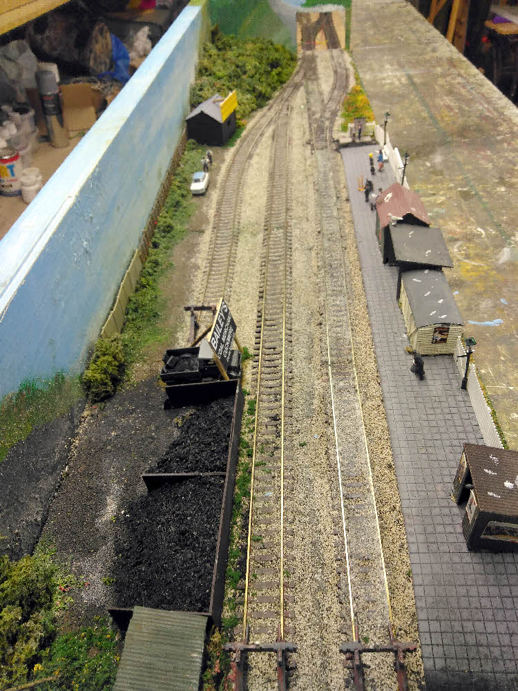 The out bound gravel wagons are left on the central siding as there isn't room