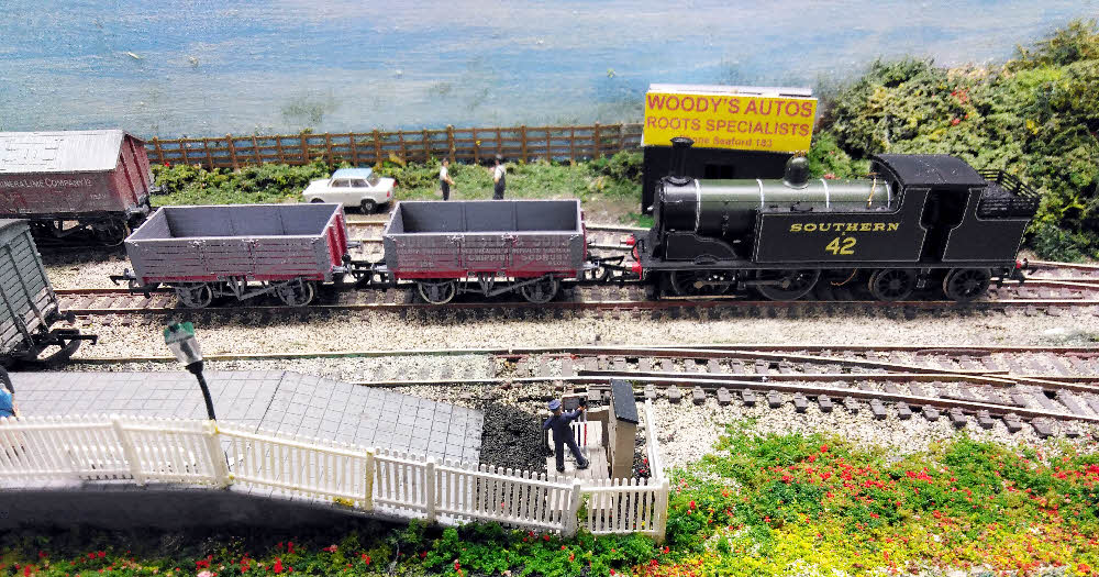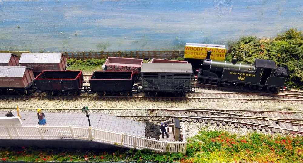 The in bound coal wagons and break van are moved to the central siding.